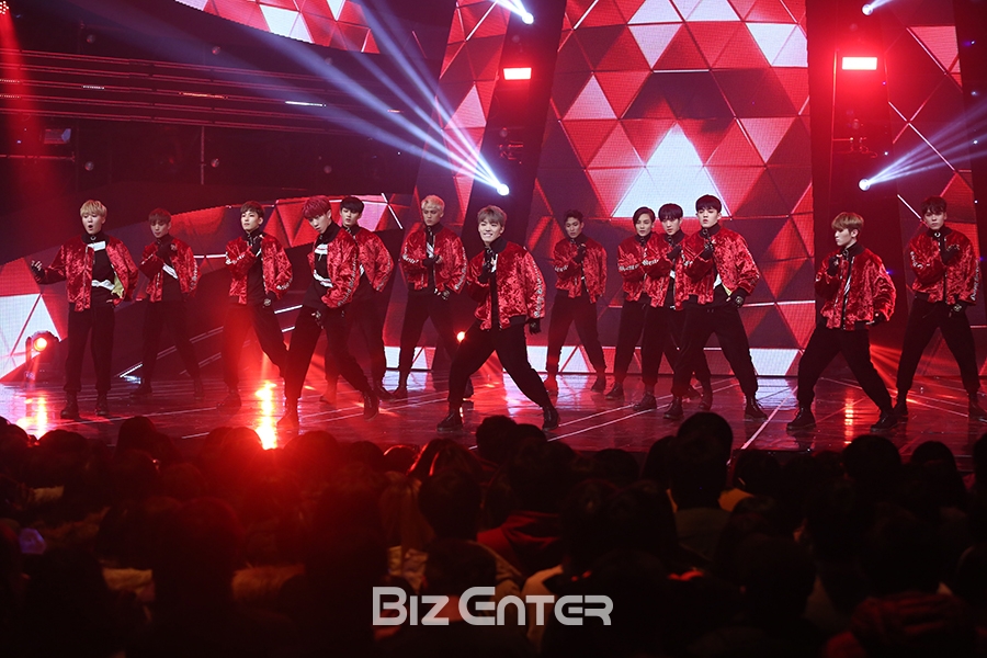 그룹 세븐틴이 14일 오후 경기 고양시 일산동구 MBC드림센터에서 진행된 '쇼 챔피언' 현장공개에서 멋진 무대를 선보이고 있다.