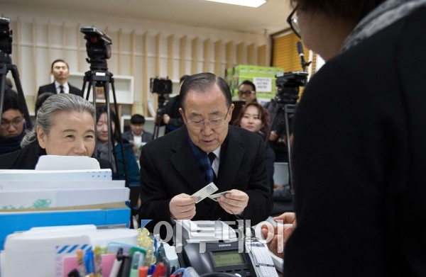 반기문 전 유엔 사무총장과 부인 유순택 여사가 13일 오전 거주지인 서울 동작구 사당3동 주민센터를 방문, 도로명 주소를 부착한 주민등록증을 받아 확인하고 있다. 이동근 기자 foto@
