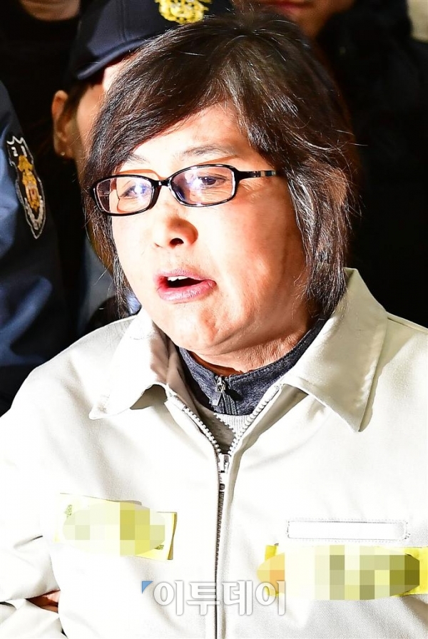 업무방해혐의로 체포영장이 발부된 국정농단 주범 최순실씨가 25일 오전 서울 대치동 특검사무실에 소환, "특검이 자백을 강요하고 있다" 며 억울함을 호소하고 있다. 이동근 기자 foto@