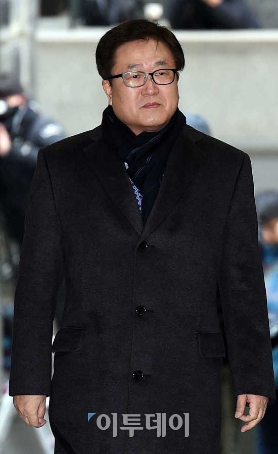 대한승마협회장을 맡고 있는 박상진 삼성전자 대외협력담당 사장이 13일 서울 강남구 특검사무실에 피의자 신분으로 출석하고 있다. 고이란 기자 photoeran@