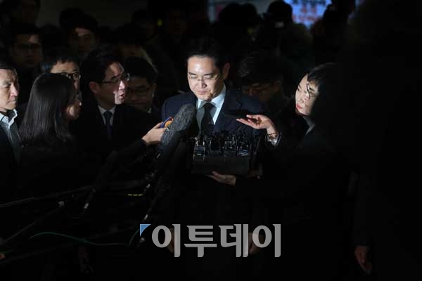 뇌물공여 등 혐의를 받는 이재용 삼성전자 부회장이 조사를 받기 위해 13일 오전 서울 대치동 특별검사 사무실로 향하고 있다. 이 부회장의 특검 출석은 지난달 12일 첫 소환 조사 이후 32일 만이며, 같은 달 19일 구속영장이 기각된 이후로는 25일 만이다. 고이란 기자 photoeran@