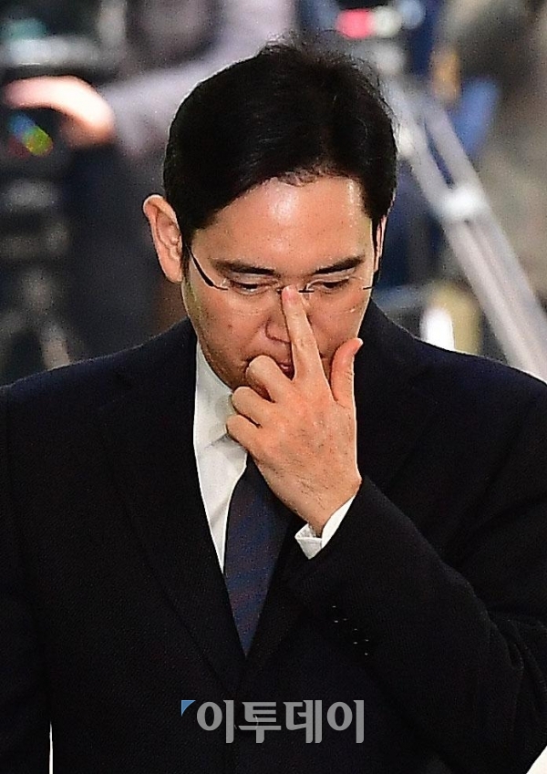 뇌물공여와 특정경제범죄 가중처벌법상 횡령 등의 혐의로 두 번째 구속영장이 청구된 이재용 삼성전자 부회장이 16일 오전 영장실질심사에 앞서 서울 대치동 특검 사무실에 출석하고 있다. 이동근 기자 foto@