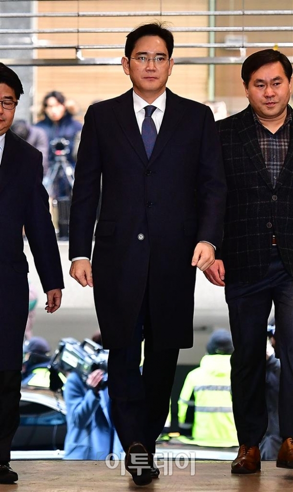 뇌물공여와 특정경제범죄 가중처벌법상 횡령 등의 혐의로 두 번째 구속영장이 청구된 이재용 삼성전자 부회장이 16일 오전 영장실질심사에 앞서 서울 대치동 특검 사무실에 출석하고 있다. 이동근 기자 foto@