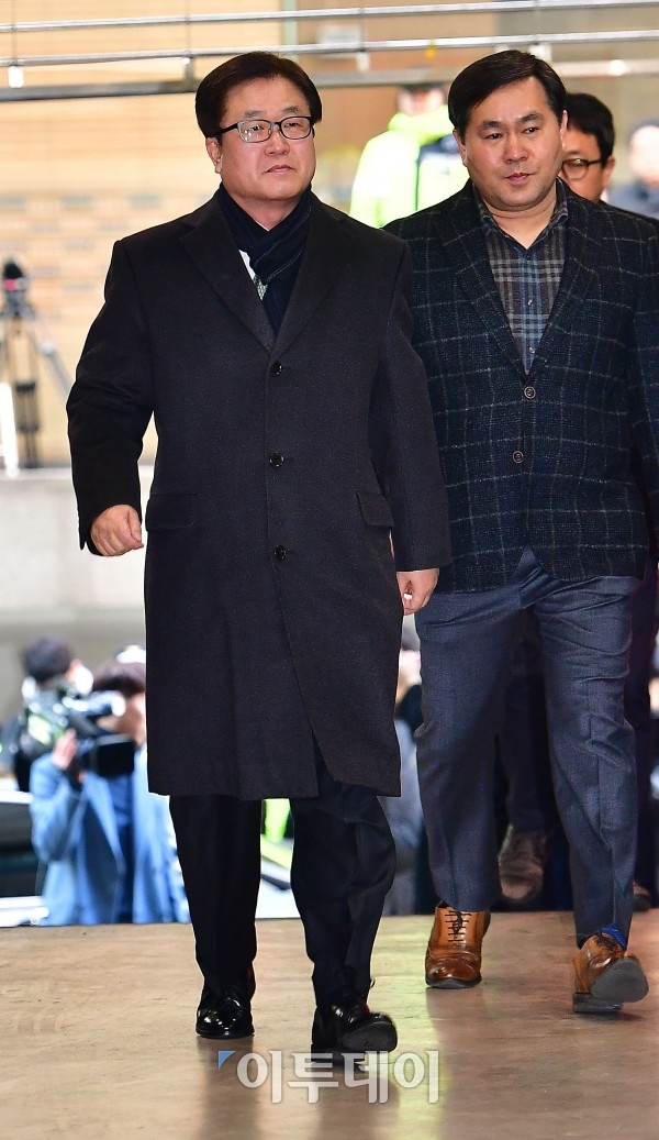 뇌물공여 혐의로 구속영장이 청구된 박상진 삼성전자 대외협력담당 사장이 16일 오전 영장실질심사에 앞서 서울 대치동 특검 사무실에 출석하고 있다. 이동근 기자 foto@