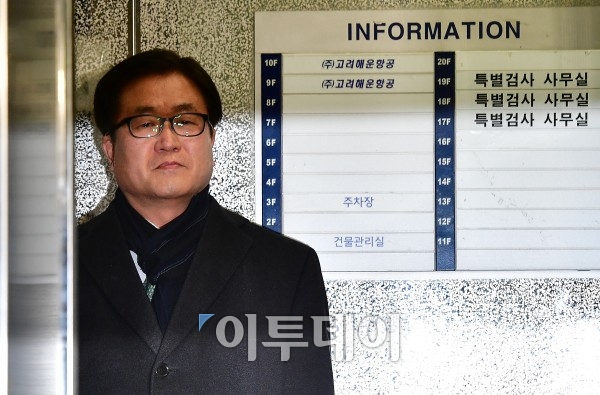 뇌물공여 혐의로 구속영장이 청구된 박상진 삼성전자 대외협력담당 사장이 16일 오전 영장실질심사에 앞서 서울 대치동 특검 사무실에 출석하고 있다. 이동근 기자 foto@