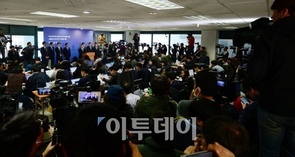 박영수 특별검사가 6일 서울 대치동 특검 사무실에서 '최순실 국정농단 사건' 최종수사결과와 성과에 대해 발표를 하고 있다. 이동근 기자 foto@