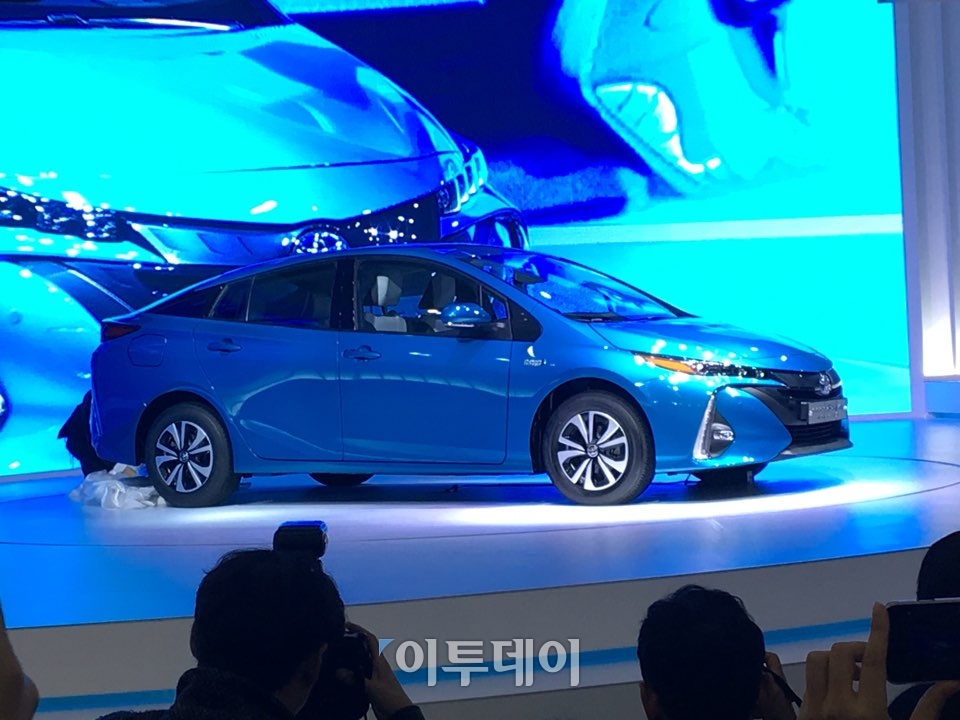 토요타코리아가 30일 경기도 고양시 일산 킨텍스 1전시장에서 열린 ‘2017 서울모터쇼’에서 플러그인 하이브리드 모델인 ‘프리우스 프라임’을 국내 최초로 공개했다.