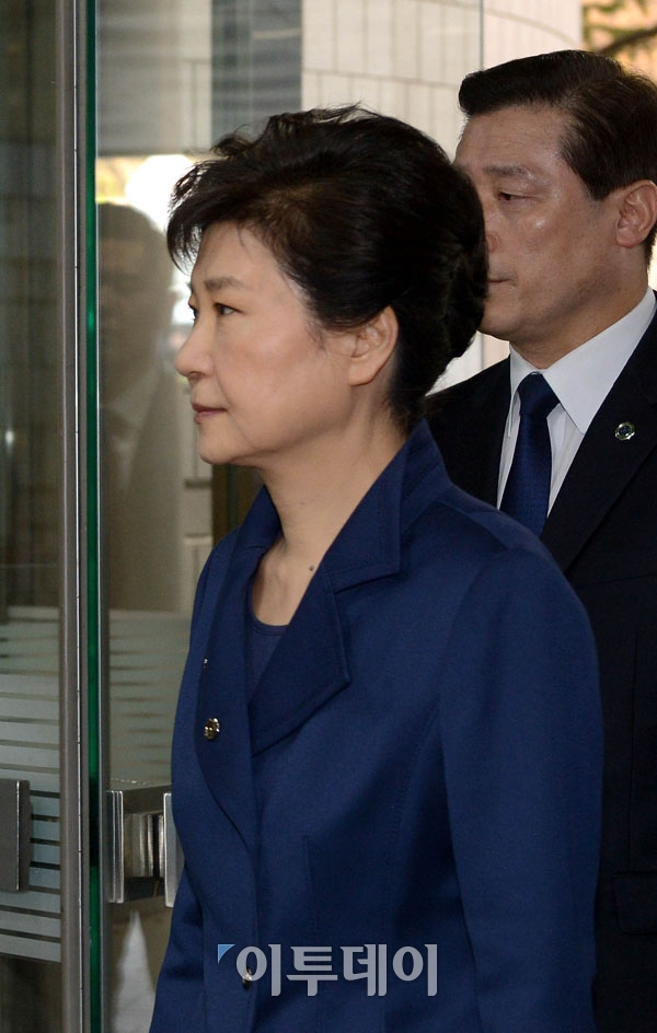 [포토]영장실질심사 받기위해 법원으로 들어서는 '박근혜 전 대통령'