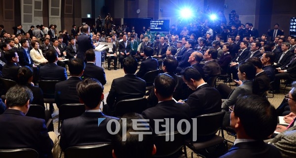 문재인 더불어민주당 대선후보가 14일 서울 중구 프레스센터에서 열린 제19대 대선 후보 초청 특별강연에 참석해 정책공약 강연을 하고 있다. 이동근 기자 foto@