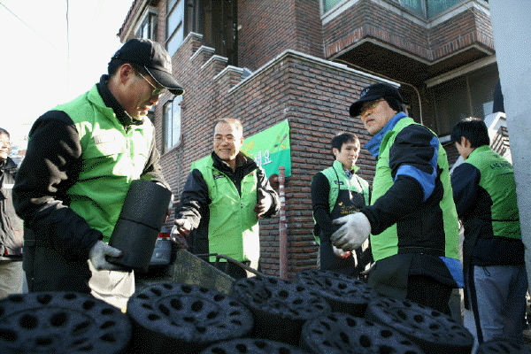 이날 김우진 사장 이하 LIG손해보험 임원 20여 LIG희망봉사단원 30여 명은 연탄보일러를 사용하고 있는 10개 가정에 총 3000장의 연탄을 직접 배달한 것.