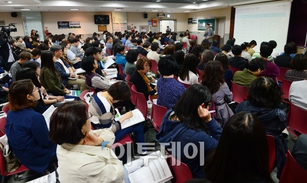 14일 서울 중구 종로학원 본원에서 열린 '의학, 간호,보건계열 관련학과 입시설명회'에서 학부모 및 학생들이 입시설명을 듣고 있다. 이동근 기자 foto@