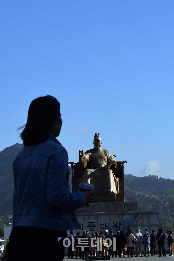 전국의 미세먼지 농도가 보통 수준을 보인 15일 오전 서울 광화문광장에서 바라본 하늘이 맑은 모습을 보이고 있다. 이동근 기자 foto@