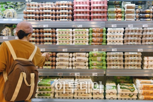 지난 달 소비자물가지수가 5개월 연속 2% 안팎을 유지하며 고공행진을 기록중인 가운데 1일 서울의 한 대형마트에서 한 시민이 달걀을 살펴보고 있다. 통계청이 발표한 5월 소비자물가동향에 따르면 지난 해 같은 달과 비교해 10.1% 급등한 도시가스 요금과 달걀(67.9%), 오징어(59.0%), 수박(17.1%) 등 농축수산물의 가격 상승이 지수 오름세에 영향을 준 것으로 나타났다. 이동근 기자 foto@