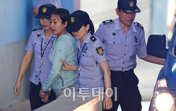 업무방해 등의 혐의로 구속영장이 청구된 최순실 씨의 딸 정유라 씨가 2일 서울 서초구 서울중앙지법에 도착해 법정으로 이동하고 있다. 이날 영장실질심사는 박근혜 전 대통령의 구속영장을 발부한 강부영 영장전담판사의 심리로 진행된다. 이동근 기자 foto@
