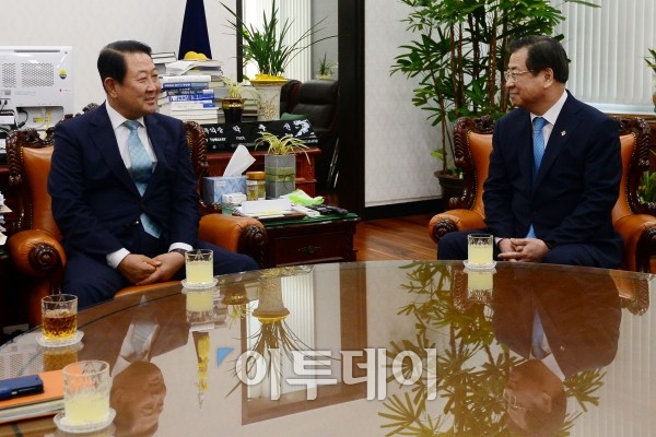 서훈 국가정보원장이 5일 서울 여의도 국회에서 박주선 부의장과 만나 대화하고 있다. 이동근 기자 foto@