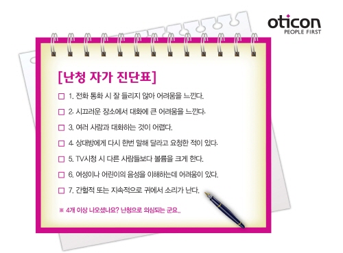 군생활 중 생긴 소음성 난청으로 인해 일상생활에 큰 불편함을 겪고 있는 사람들이 많다. 이에 오티콘 코리아(Oticon Korea)는 병원 방문 전 간단한 항목만으로도 청력 상태를 자가진단해 볼 수 있다고 밝혔다.