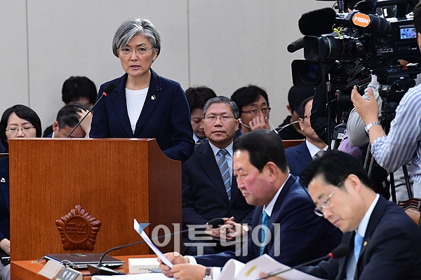 강경화 외교부 장관 후보자가 7일 서울 여의도 국회에서 열린 인사청문회에서 모두발언을 하고 있다. 고이란 기자 photoeran@
