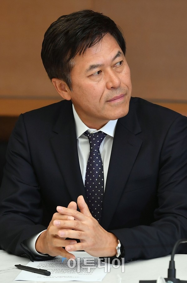 박정호 SK수펙스추구협의회 커뮤니케이션위원장이 23일 서울 중구 대한상공회의소에서 열린 공정거래위원장과 4대그룹간 정책간담회에서 김상조 공정거래위원장의 인사말을 경청하고 있다. 이동근 기자 foto@