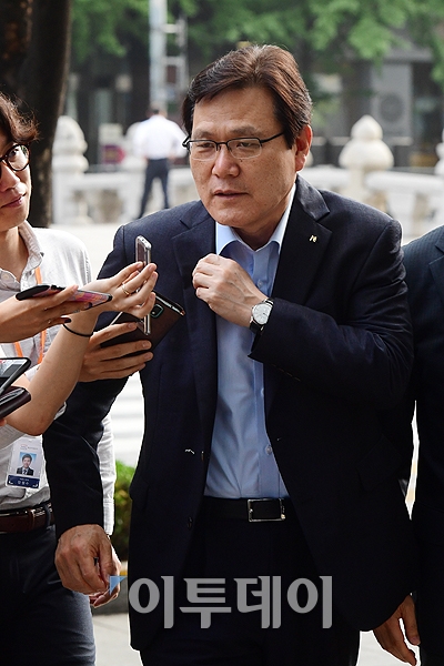 최종구 금융위원장 후보자가 4일 오전 서울 중구 예금보험공사에 마련된 국회 인사청문회 준비 사무실로 첫 출근을 하고 있다. 이날 최 후보자는 금융위 주요 부서로부터 금융시장 현안에 대한 업무보고를 받는다. 고이란 기자 photoeran@