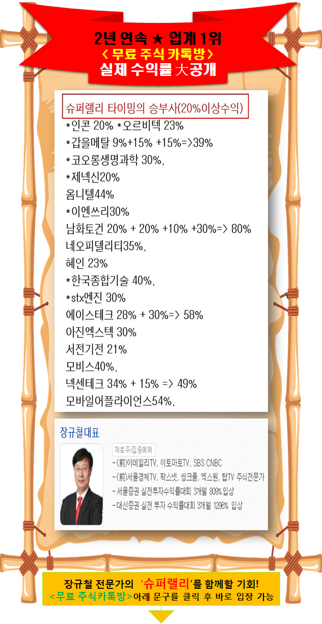 ▶[전문가 카카오톡 채팅방] 투자대회 다수 입상! 이 전문가의 추천주를 빼고 수익을 논하지 말라>>