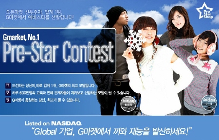 오픈마켓 G마켓은 오는 6월말까지 총 70여명 예비스타를 뽑는 '프리스타(Pre-Star) 콘테스트'를 연다고 8일 밝혔다.