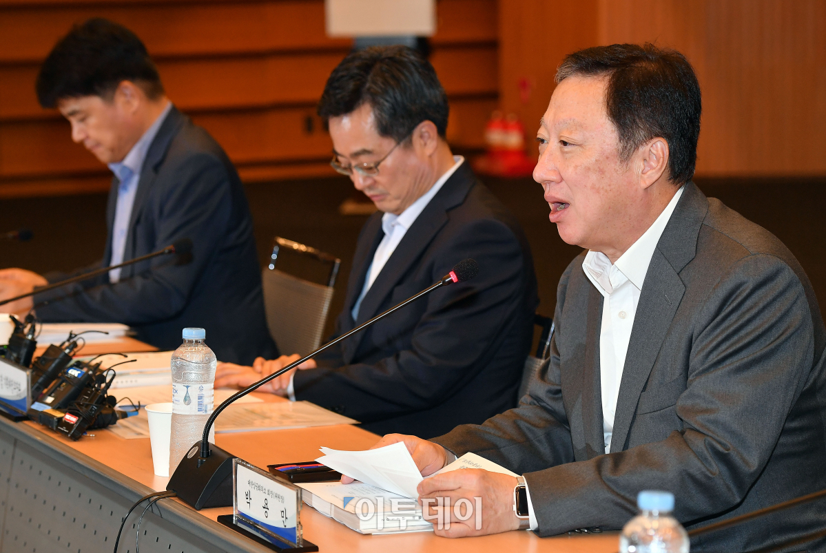 박용만 세제발전심의위원장 겸 대한상공회의소 회장이 2일 서울 중구 대한상공회의소에서 열린 제50차 세제발전심의위원회에서 모두발언을 하고 있다. 이동근 기자 foto@
