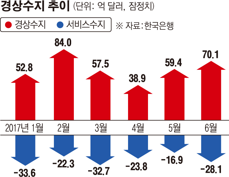 최 팀장은 “서비스수지는 사드관련 보복에 여행수지가 좋지 못했던데다 운송수지도 악화한 때문”이라고 밝혔다.