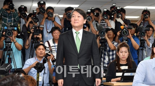 국민의당 안철수 전 대표가 3일 오후 서울 여의도 당사에서 당대표 선거 출마 기자회견을 갖기 위해 입장하고 있다. 최유진 기자 strongman55@