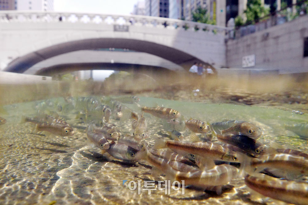 [포토]도심속의 피라미 '청계천에 살아요~'