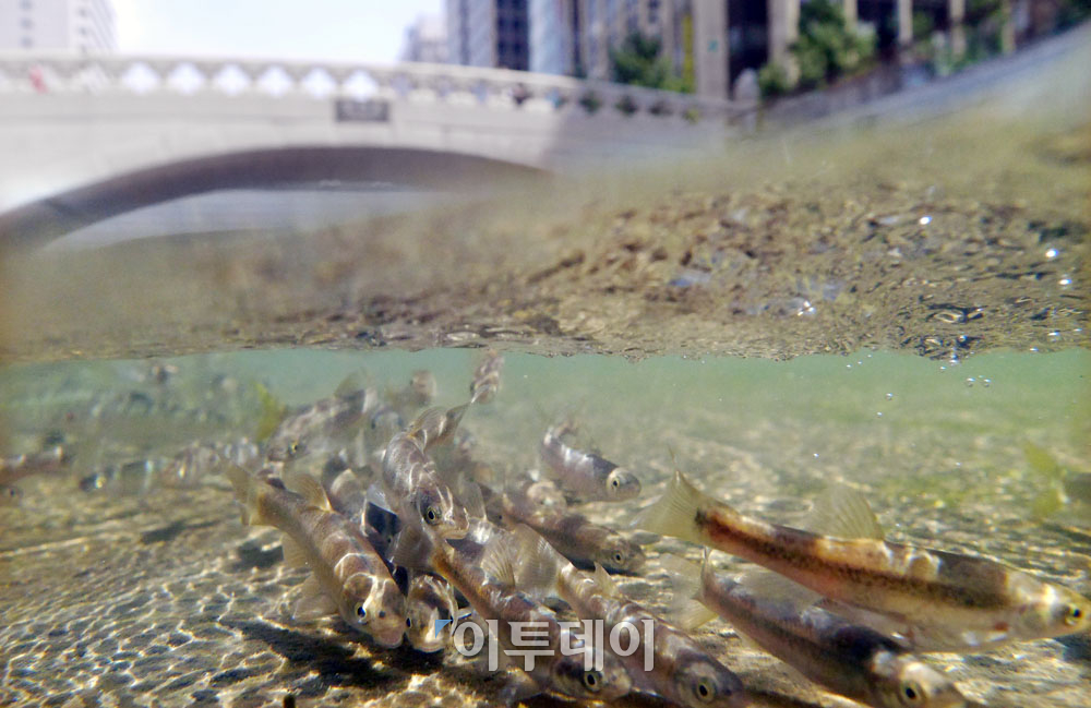 [포토]무리지어 이동하는 피라미 '청계천이 우리집~'