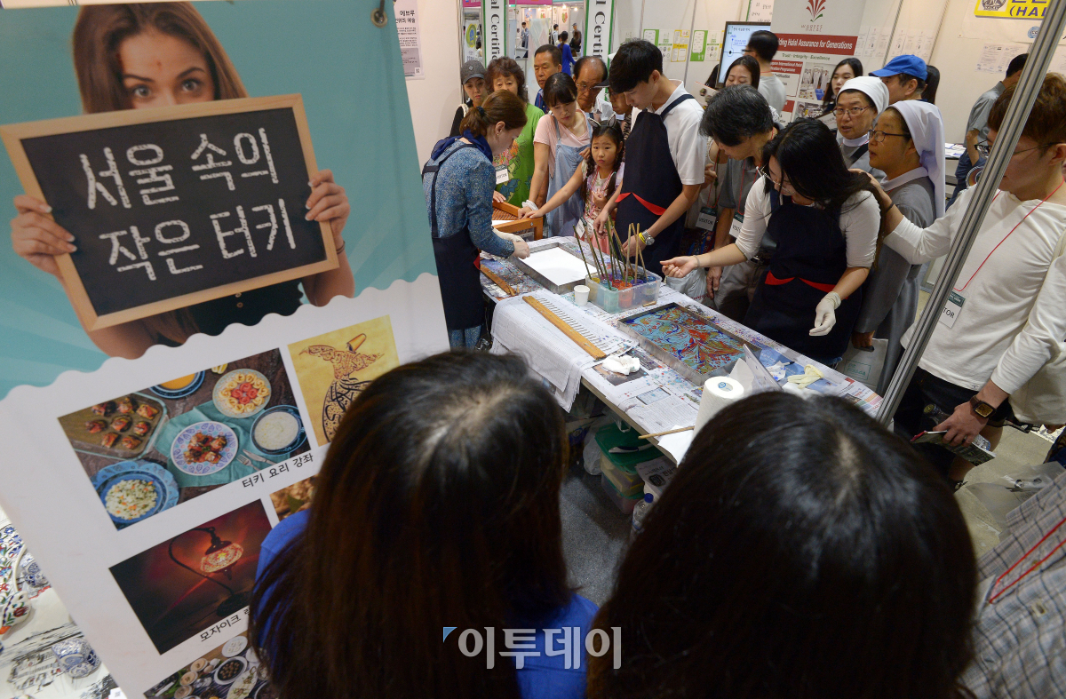할랄산업엑스포코리아2017이 17일 서울 강남구 코엑스에서 열린 가운데 참관객들이 터키 문화체험에 관심을 보이고 있다. 오는 19일까지 열리는 이번 박람회는 국내 할랄시장의 활성화를 위해 국제할랄컨퍼런스, 할랄 화장품 포럼, 세계 할랄 인증과 마케팅 등 다양한 컨퍼런스와 세미나가 열린다. 이동근 기자 foto@