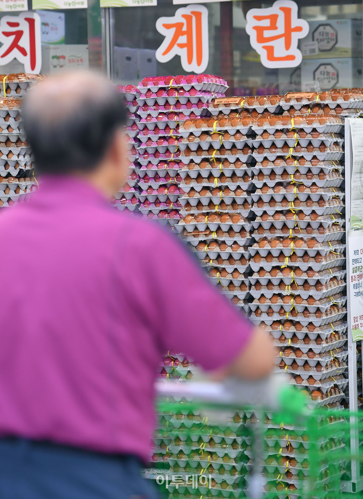 18일 오전 서울 송파구 가락몰 내 한 식자재 도매업체에 달걀이 쌓여있다. 업체 관계자는 "적합판정을 받았음에도 소비자들의 불안심리 때문에 계란 판매량이 평소대비 1/3에도 못미치는 수준으로 줄어들었다"고 밝혔다. 한편 이날 정부는 전국 모든 산란계 사육농가를 대상으로 시행한 전수조사 최종결과 발표를 앞두고 있지만 일부 지역에서 시료 채취 지침을 어기며 엉터리 조사를 한 것으로 나타나 해당 농장에 대해 재조사에 들어간다고 밝혔다. 이동근 기자 foto@