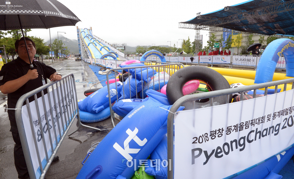 [포토] 광화문광장 봅슬레이 워터슬라이드 우천으로 운영 취소