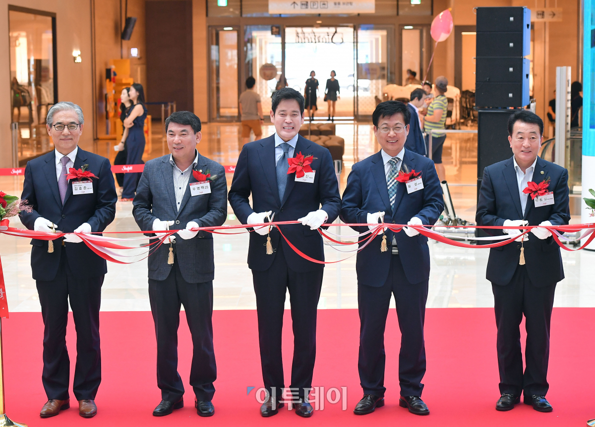 스타필드 고양점 그랜드 오픈일인 24일 오전 경기 고양시 스타필드 개장식에서 정용진 신세계그룹 부회장(가운데)를 비롯한 주요내빈들이 테이프커팅을 하고 있다. 스타필드 고양은 수도권 서북부 최대 실내 쇼핑테마파크로, 부지면적 9만1000㎡, 연면적 36만4000㎡, 매장면적 13만5500㎡에 동시주차 4500대 규모를 갖췄다. 이동근 기자 foto@