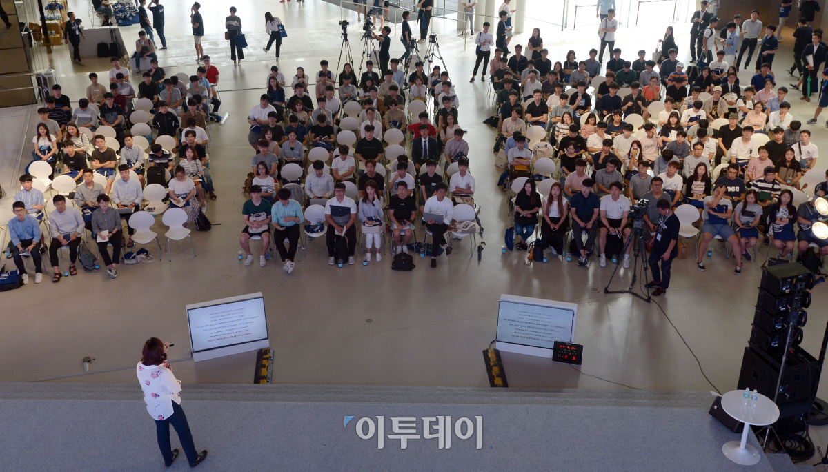 현대자동차 잡페어(Job Pair)가 24일 경기 고양시 현대 모터스튜디오 고양에서 열린 가운데 구직자들이 주제별 특강 'H-스토리'를 경청하고 있다. 오는 25일까지 이틀간 “What makes you move? 당신과 함께 세상을 움직입니다”라는 주제로 열리는 이번 채용박람회는 참가자들의 역량을 마음껏 발휘할 수 있는 프로그램들을 운영한다. 이동근 기자 foto@