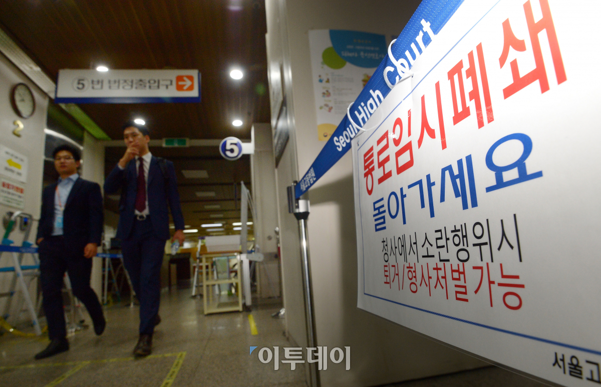 [포토] 통로 임시 폐쇄...세기의 재판 앞둔 중앙지법