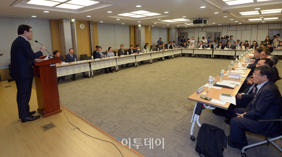 최종구 금융위원장이 28일 서울 여의도 국회에서 열린 '국회와 함께하는 사회적금융(임팩트금융) 포럼' 발족식에서 축사를 하고 있다. 이동근 기자 foto@
