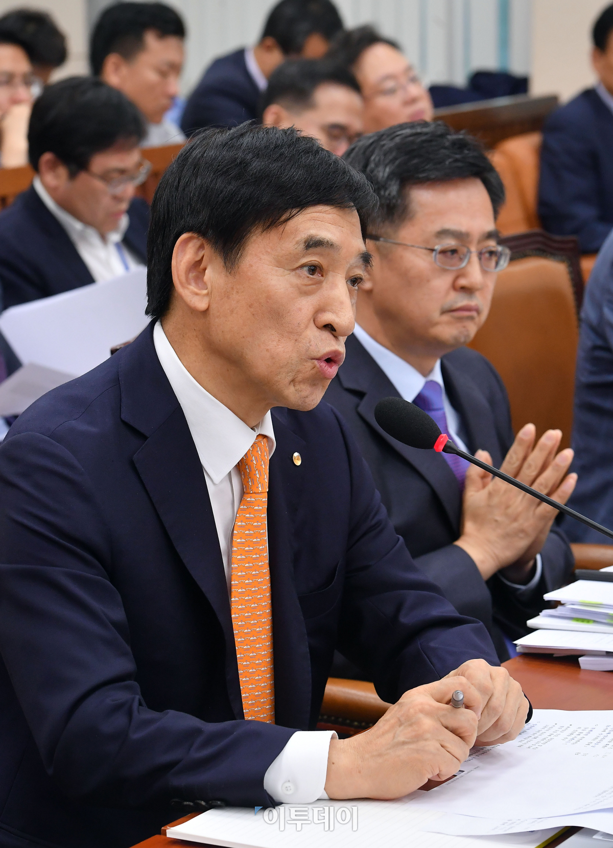이주열 한국은행 총재가 28일 서울 여의도 국회에서 열린 기획재정위 전체회의에서 질의에 답하고 있다. 이동근 기자 foto@