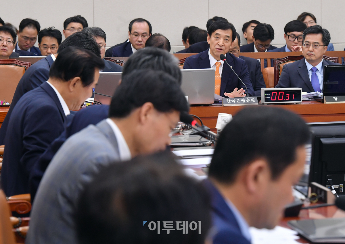 이주열 한국은행 총재가 28일 서울 여의도 국회에서 열린 기획재정위 전체회의에서 질의에 답하고 있다. 이동근 기자 foto@