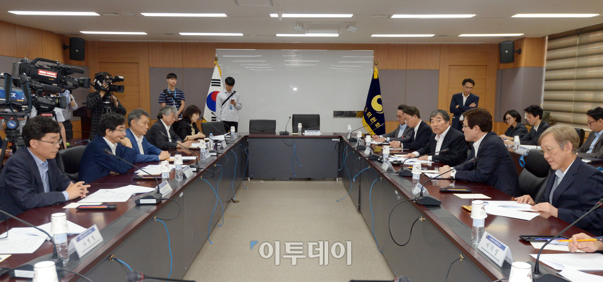 윤석헌 금융행정혁신위원장이 29일 서울 종로구 정부서울청사에서 열린 위원회 1차 회의에서 모두발언을 하고 있다. 이동근 기자 foto@