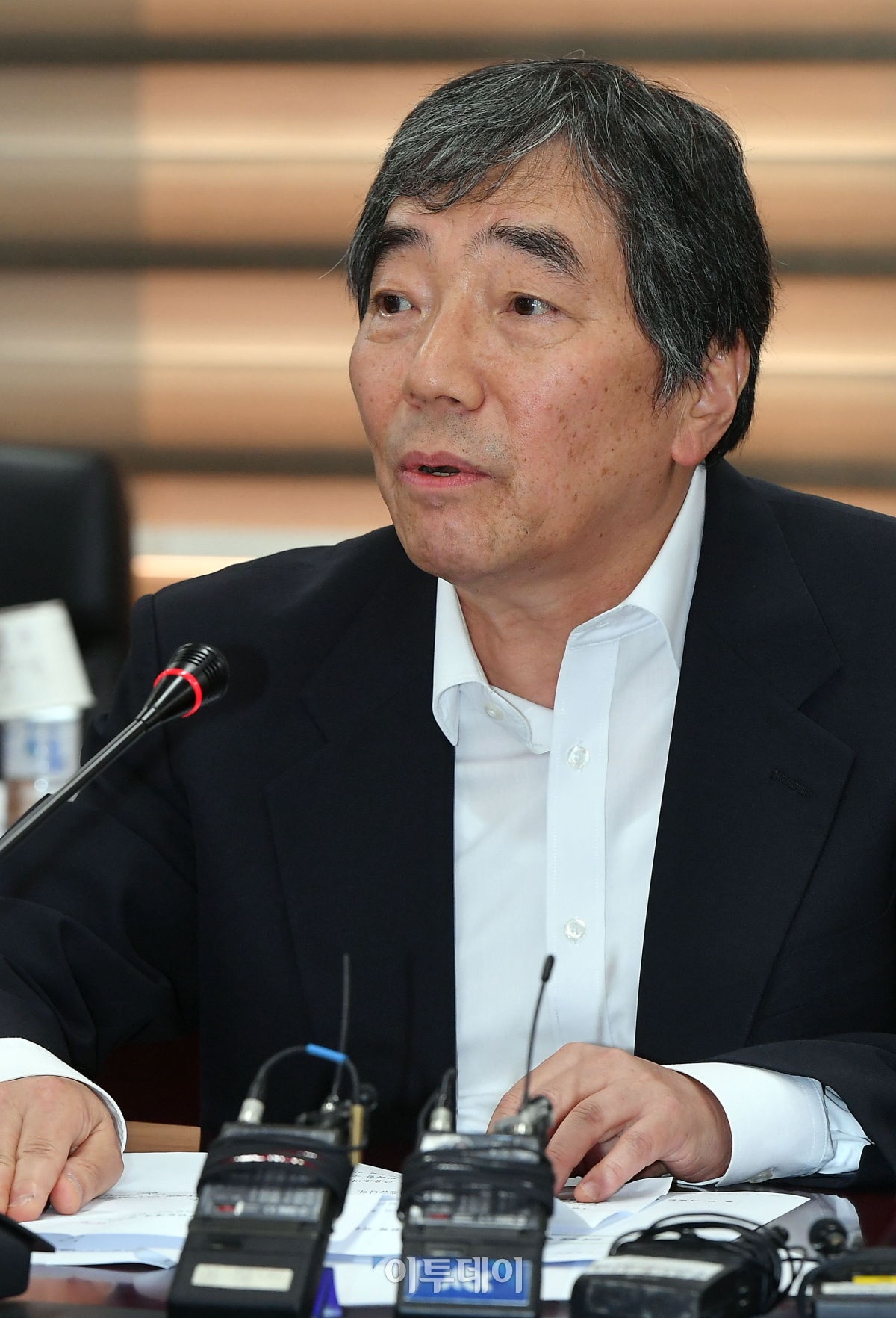 윤석헌 위원장이 29일 서울 종로구 정부서울청사에서 열린 금융행정혁신위원회 1차 회의에서 모두발언을 하고 있다. 이동근 기자 foto@