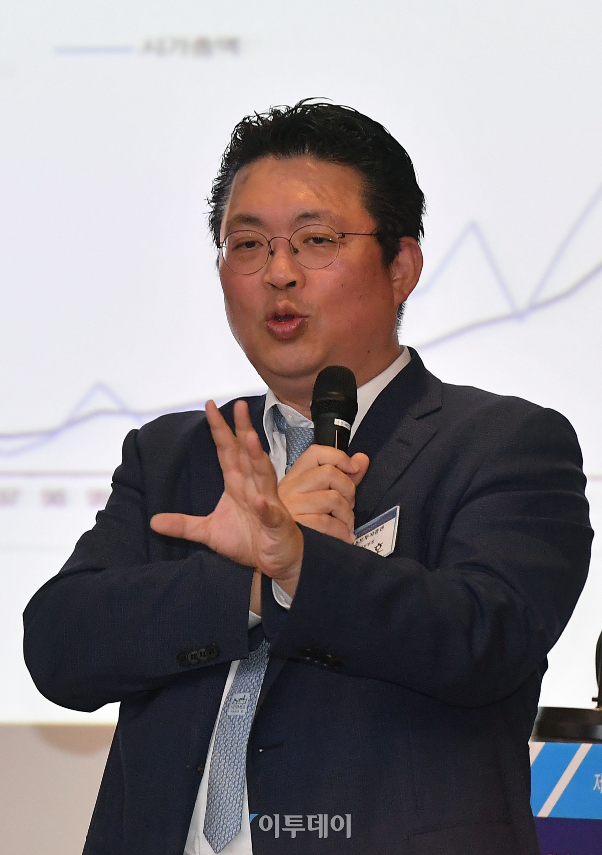 '제5회 이투데이 프리미엄 투자세미나'가 29일 서울 여의도 한국금융투자협회에서 열린 가운데 윤지호 이베스트투자증권 리서치본부장이 '2017년 4분기 국내 주식시장의 전망'을 주제로 강연하고 있다. 경제신문 이투데이가 '4차 산업혁명 시대 주식투자 전략'을 주제로 강연하고 있다. 이번 세미나는 17년도 4분기 국내 주식시장 전망과 4차 산업혁명 테마주 발굴 및 투자전략을 제시한다. 이동근 기자 foto@