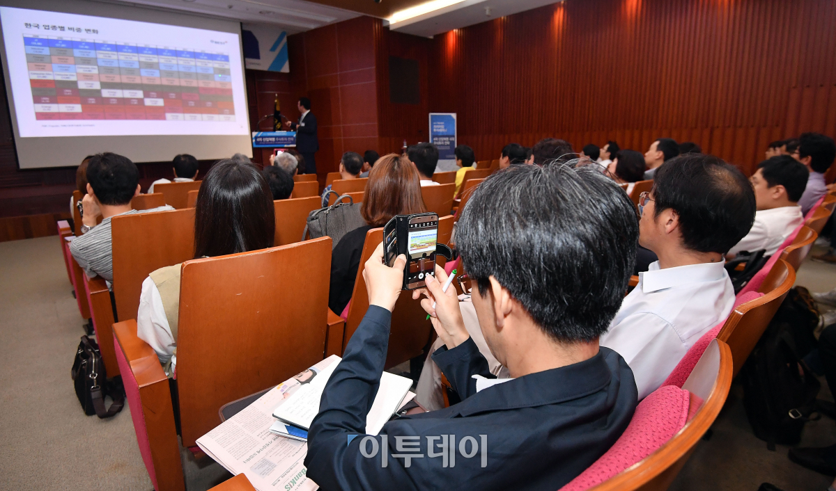 '제5회 이투데이 프리미엄 투자세미나'가 29일 서울 여의도 한국금융투자협회에서 열린 가운데 참석자들이 연사의 강연을 듣고 있다. 경제신문 이투데이가 '4차 산업혁명 시대 주식투자 전략'을 주제로 연 이번 세미나는 17년도 4분기 국내 주식시장 전망과 4차 산업혁명 테마주 발굴 및 투자전략을 제시한다. 이동근 기자 foto@