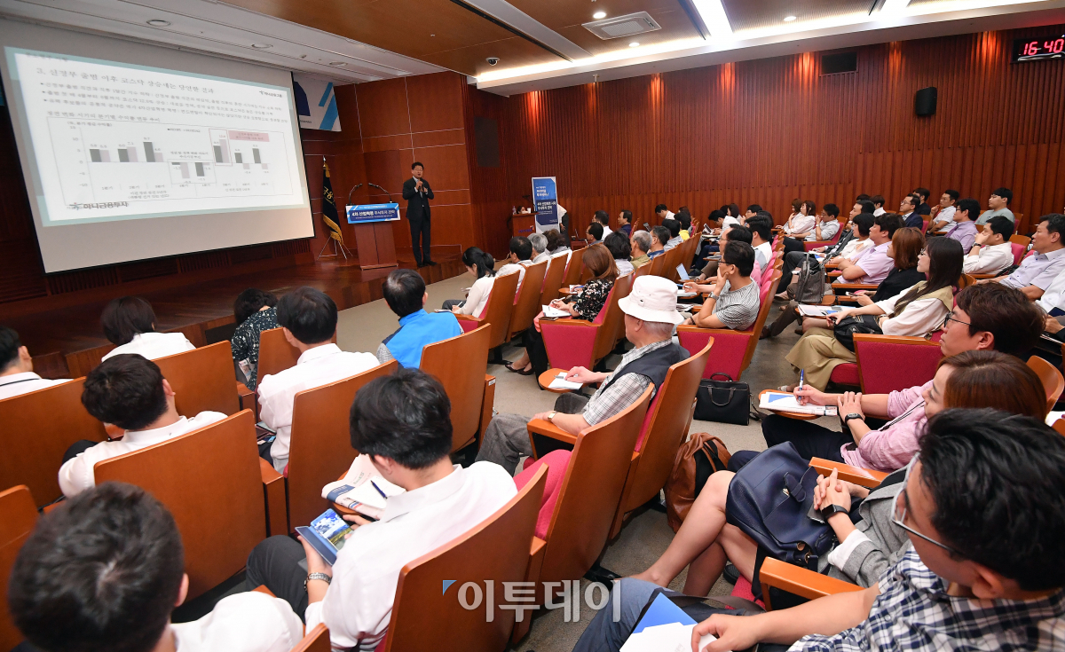 '제5회 이투데이 프리미엄 투자세미나'가 29일 서울 여의도 한국금융투자협회에서 열린 가운데 참석자들이 연사의 강연을 듣고 있다. 경제신문 이투데이가 '4차 산업혁명 시대 주식투자 전략'을 주제로 연 이번 세미나는 17년도 4분기 국내 주식시장 전망과 4차 산업혁명 테마주 발굴 및 투자전략을 제시한다. 이동근 기자 foto@