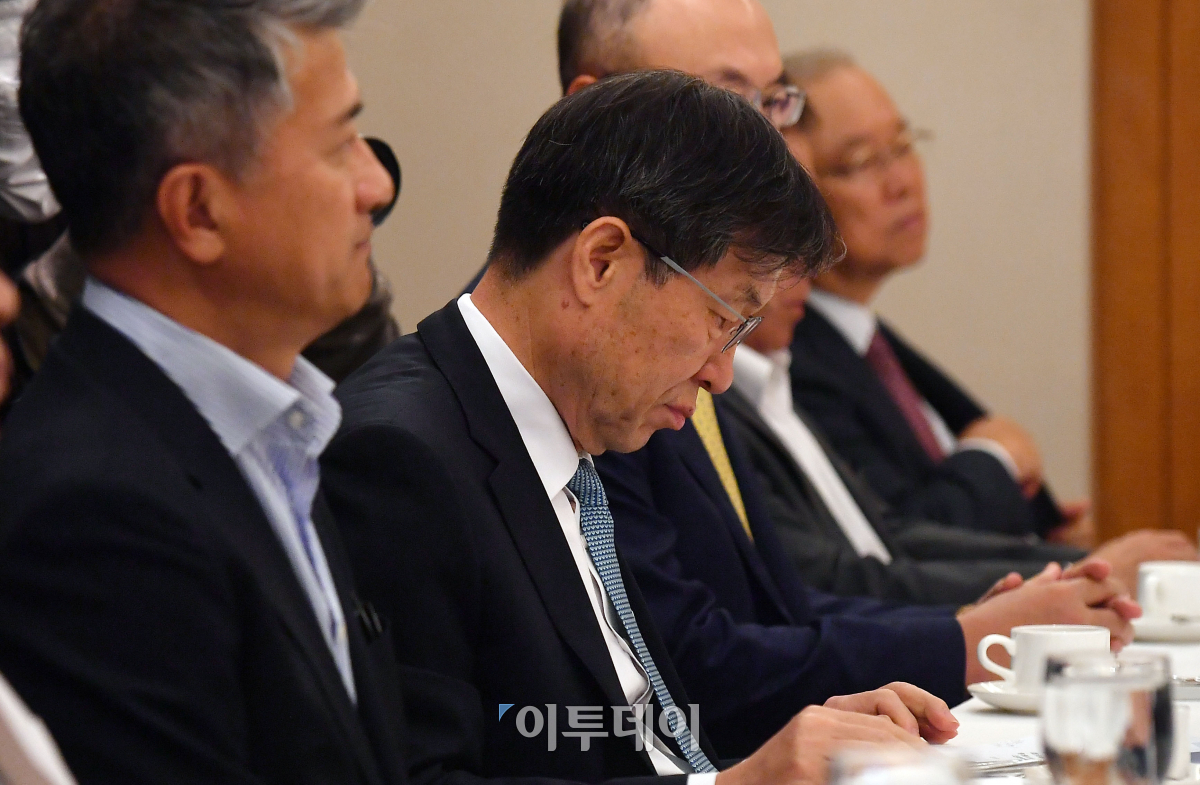 권오준 포스코 회장이 30일 오전 서울 소공동 롯데호텔에서 열린 철강업계 상생협력 간담회에서 자료를 살펴보고 있다. 이동근 기자 foto@