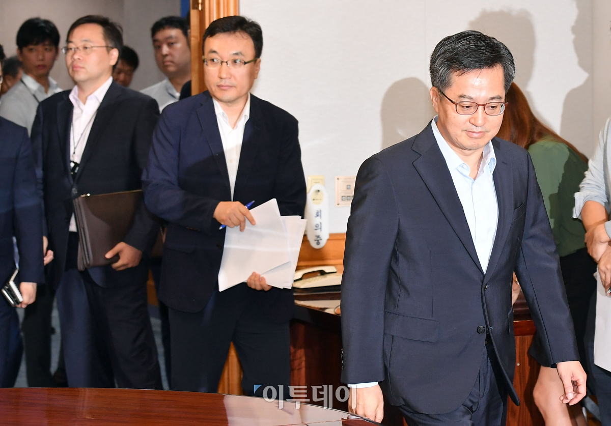 김동연 경제부총리 겸 기획재정부 장관이 4일 오전 서울 중구 은행회관에서 열린 거시경제금융회의에 참석하기 위해 입장하고 있다. 이동근 기자 foto@