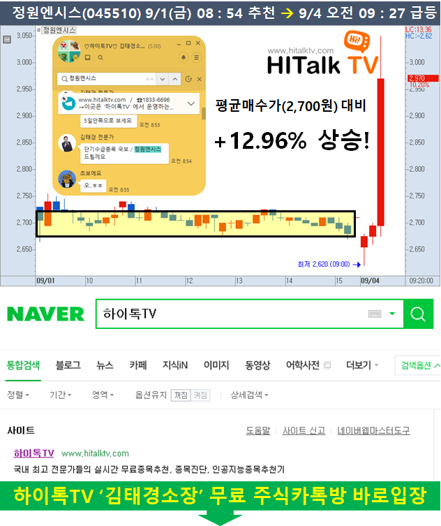 ▶ [하이톡TV] 14명의 정상급 전문가 종목상담 카톡방 무료이용 >>