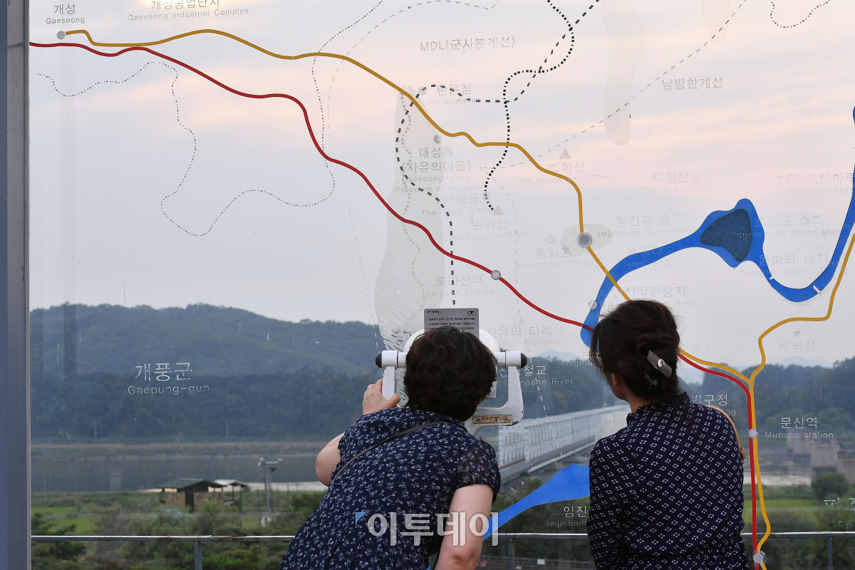 북한의 제6차 핵실험으로 한반도가 다시 긴장상태에 돌입했다. 4일 경기 파주시 임진각을 찾은 시민들이 북녘을 바라보고 있다. 북한의 이번 핵실험으로 미국은 경제적 단절을 위한 '세컨더리 보이콧' 독자 시행을 예고했다. 이동근 기자 foto@