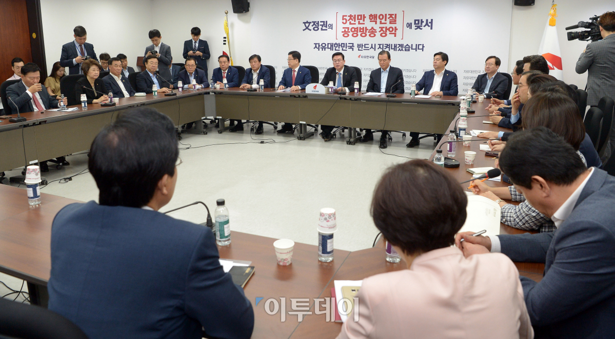 정우택 자유한국당 원내대표가 5일 오전 서울 여의도 국회에서 열린 원내대책회의에서 모두발언을 하고 있다. 이동근 기자 foto@
