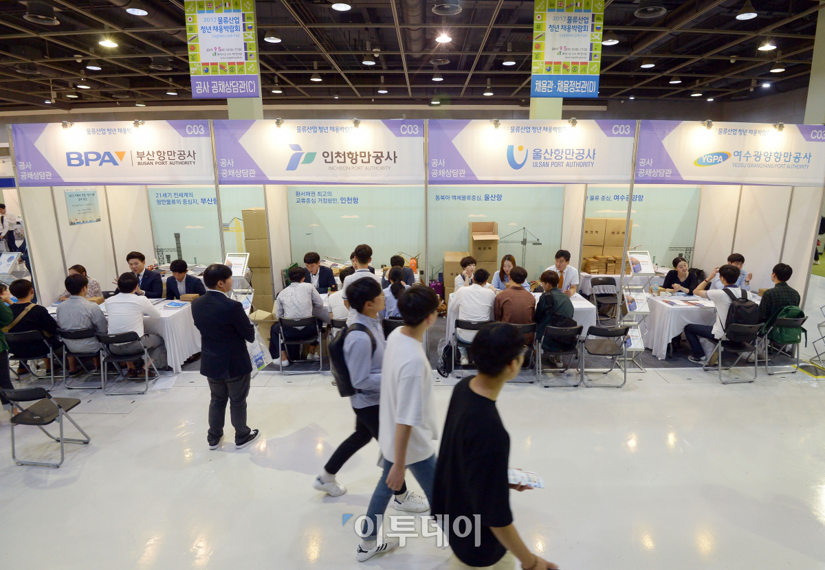2017 물류산업 청년 채용박람회가 5일 서울 서초구 aT센터에서 열린 가운데 구직자들이 취업상담을 받고 있다. '물류산업이 청년의 미래를 만듭니다'를 주제로 열린 이번 박람회는 현대상선·한진·KCTC 등 물류관련기업과 공공기관 60여개 업체가 참여하며, 21개 기업이 현장에서 채용면접을 진행한다. 이동근 기자 foto@